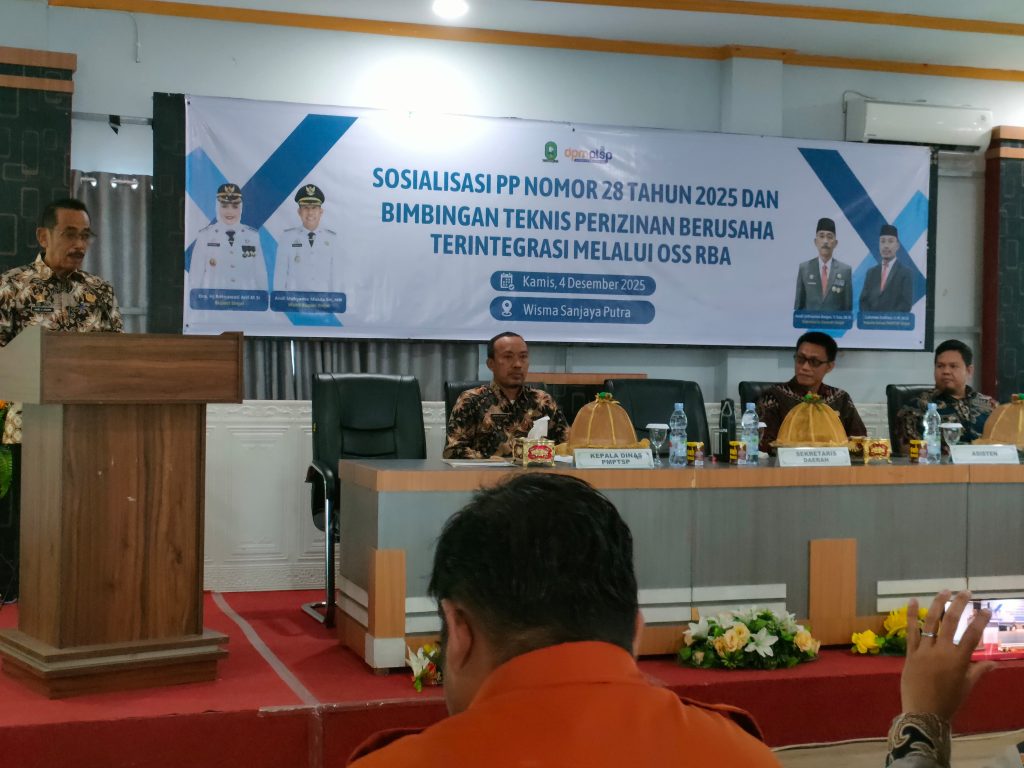 Suaraindonesiaku.com, SINJAI – Dinas Penanaman Modal Pelayanan Terpadu Satu Pintu (DPMPTSP) Kabupaten Sinjai menggelar Sosialisasi Peraturan Pemerintah (PP) Nomor 28 Tahun 2025 dan Bimbingan Teknis Perizinan Berusaha Terintegrasi melalui OSS RBA. Sosialisasi ini dibuka Sekretaris Daerah Kabupaten Sinjai A. Jefrianto Asapa, di Aula Wisma Sanjaya, Kecamatan Sinjai Utara, Kamis (4/12/2025) Pagi. Kepala DPMPTSP Lukman Dahlan mengatakan sosialisasi ini dilakukan untuk meningkatkan pemahaman terkait PP Nomor 28 Tahun 2025 tentang Penyelenggaraan Perizinan Berusaha Berbasis Risiko. Hal ini penting mengingat bukan hanya dasar hukum perizinan berusaha berbasis risiko yang berubah, namun juga skema perizinan yang kini dibedakan berdasarkan tingkat risiko: usaha dengan risiko rendah, menengah, atau tinggi. “Selain untuk meningkatkan pengetahuan, sosialisasi ini juga untuk meningkatkan keterampilan dalam implementasi PP 28/2025, serta meningkatkan partisipasi masyarakat dalam penyelenggaraan perizinan berusaha,”ungkap Lukman dalam laporannya. Sementara itu, Sekda menyampaikan perubahan mekanisme OSS-RBA perizinan berusaha ini merupakan upaya konkret dalam memperkuat tata kelola pemerintahan, memperjelas peran dan tanggung jawab setiap tingkatan Pemerintahan, serta meningkatkan akuntabilitas penyelenggaraan pelayanan publik. “Transformasi layanan perizinan OSS-RBA adalah langkah strategis negera dalam menciptakan kemudahan berusaha, peningkatan investasi dan pertumbuhan ekonomi inklusif,”ungkap A. Jefri saat membuka sosialisasi. Sekda berharap seluruh peserta dapat memahami isi bimtek ini, sehingga penerapannya kedepan bukan hanya memastikan pelayanan perizinan cepat namun memiliki kepastian hukum bagi masyarakat yang ingin memulai dan mengembangkan usaha. “Pelajari semua mekanisme OSS-RBA, pahami peran dan tanggung jawab masing-masing dan jadikan gerai perizinan sebagai pusat pelayanan yang benar-benar membantu masyarakat,”harap Sekda. Turut hadir Asisten Pemerintahan dan Kesra A. Irwansyahrani Yusuf, Perwakilan DPMPTSP Prov. Sulsel, serta Tim Teknis Perangkat Daerah, Penanggung Jawab dan Operator Gerai Panrita di Desa serta Pelaku Usaha sebagai peserta bimtek. (Humas Mominfo)