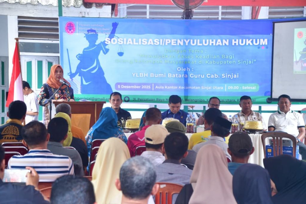 Suaraindonesiaku.com, SINJAI – Pemerintah Kabupaten (Pemkab) Sinjai menyampaikan apresiasi dan dukungan penuh terhadap inisiatif yang diambil oleh Yayasan Lembaga Bantuan Hukum (YLBH) Bumi Batara Guru Cabang Sinjai dalam menyelenggarakan Sosialisasi Bantuan Hukum untuk Masyarakat. Kegiatan ini merupakan langkah strategis untuk memastikan akses keadilan bagi seluruh masyarakat Sinjai, khususnya bagi mereka yang kurang mampu. Sosialisasi yang bertempat di Aula Kantor Camat Sinjai Utara pada Jumat (5/12/2025) ini dibuka secara resmi oleh Staf Ahli Bupati Sinjai Bidang Politik dan Hukum, Hj. Andi Hariyani Rasyid, yang mewakili Bupati Sinjai. Dalam sambutannya, Hj. Andi Hariyani Rasyid menegaskan bahwa Pemkab Sinjai menyambut baik dan memberikan apresiasi atas upaya YLBH Bumi Batara Guru dalam melaksanakan kegiatan ini. Ia menyoroti bahwa akses terhadap keadilan adalah hak fundamental setiap warga negara, sesuai jaminan dalam konstitusi. ”Konstitusi kita menjamin bahwa setiap orang berhak mendapatkan kepastian, perlindungan, dan perlakuan hukum yang adil,” tutur Hj. Andi Hariyani Rasyid. Ia mengakui adanya kendala yang dihadapi masyarakat, terutama terkait minimnya pemahaman mengenai hak-hak hukum dan keterbatasan kemampuan finansial untuk mengakses jasa hukum profesional. Oleh karena itu, peran Lembaga Bantuan Hukum (LBH) menjadi sangat krusial. Kehadiran YLBH Bumi Batara Guru dinilai sebagai mitra strategis Pemerintah Daerah dalam upaya mewujudkan keadilan sosial bagi seluruh masyarakat Sinjai. Hj. Andi Hariyani Rasyid menjelaskan bahwa acara sosialisasi ini memiliki makna yang sangat penting. Ini bukan sekadar penyampaian materi, tetapi merupakan langkah konkret untuk Meningkatkan Kesadaran Hukum (Legal Awareness), yaitu memberikan pengetahuan dasar kepada masyarakat tentang hak-hak mereka, prosedur hukum, dan bagaimana menghadapi masalah hukum. Selanjutnya, melalui kegiatan ini pula dapat memperluas jangkauan Bantuan Hukum, memastikan bahwa masyarakat yang tergolong miskin atau rentan dapat mengetahui dan memanfaatkan layanan bantuan hukum secara gratis. Kepada seluruh peserta yang hadir, Staf Ahli Bupati berpesan agar memanfaatkan momentum ini sebaik-baiknya. ”Dengarkan, tanyakan, dan sebarkan informasi yang didapatkan. Jadilah duta-duta kesadaran hukum di lingkungan Bapak dan ibu sekalian,” harapnya. Lebih lanjut, ia meminta YLBH Bumi Batara Guru untuk terus menjaga integritas, profesionalitas, dan semangat pengabdian dalam menjalankan tugas mulia ini. Sementara itu, Ketua Panitia, Andi Nurfahrul Ismail, menyebut bahwa penyuluhan hukum ini sejalan dengan visi-misi Bupati dan Wakil Bupati Sinjai untuk meningkatkan literasi hukum masyarakat. Kegiatan ini turut dihadiri oleh pimpinan lembaga penegak hukum setempat, termasuk Ketua Pengadilan Negeri Sinjai Anthonie Spilkam Mona, Kepala Kejaksaan Negeri Sinjai M. Ridwan Bugis, perwakilan Polres Sinjai, serta Ketua YLBH Bumi Batara Guru Cabang Sinjai Subhan. Pemkab Sinjai menegaskan kesiapan untuk mendukung setiap langkah yang bertujuan memperkuat penegakan hukum dan perlindungan hak-hak masyarakat.