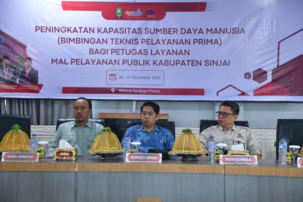 Suaraindonesiaku.com, Sinjai – Pemerintah Kabupaten (Pemkab) Sinjai melalui Dinas Penanaman Modal dan Pelayanan Terpadu Satu Pintu (DPMPTSP) menggelar Bimbingan Teknis (Bimtek) Peningkatan Sumber Daya Manusia dengan tema “Pelayanan Prima bagi Petugas Mal Pelayanan Publik (MPP)”. Kegiatan ini berlangsung di Aula Wisma Sanjaya, Sabtu (06/12/2025). Bimtek tersebut dibuka secara resmi oleh Staf Ahli Bupati Bidang Sosial dan Sumber Daya Manusia, H. Andi Mandasini, mewakili Bupati Sinjai.Ia menyampaikan apresiasi kepada seluruh pihak yang terlibat dalam penyelenggaraan kegiatan peningkatan kapasitas aparatur tersebut. Turut hadir Kepala Dinas DPMPTSP Sinjai, Lukman Dahlan, serta yang mewakil kepala kantor Kementerian Agama, OPD Teknis, BPJS Kesehatan, dan PDAM Sinjai. Sementara narasumber Kepala Perwakilan Ombudsman RI Provinsi Sulawesi Selatan bersama tim, serta Ketua Yayasan Adil Sejahtera. Dalam sambutannya, Andi Mandasini menegaskan bahwa MPP merupakan wajah terdepan birokrasi daerah dan kualitas pelayanannya sangat ditentukan oleh kompetensi serta sikap petugas yang berinteraksi langsung dengan masyarakat. Ia mengingatkan bahwa fasilitas fisik saja tidak cukup untuk menghadirkan pelayanan optimal. Karena itu, peningkatan pengetahuan, keterampilan, integritas, dan etika pelayanan aparatur menjadi kebutuhan yang tidak bisa ditunda. “Jadi ada tiga poin utama yang kami tekankan kepada para peserta, yaitu penguatan mindset melayani, peningkatan kompetensi teknis terkait prosedur dan regulasi layanan, serta penerapan empati dan hospitality dalam menghadapi masyarakat,” Ujarnya. Selain itu, Andi Mandasini juga menegaskan bahwa pelayanan prima bukan hanya soal senyum dan sapa, tetapi budaya kerja yang menempatkan kepuasan masyarakat sebagai prioritas. Setiap solusi cepat dari petugas, katanya, turut membangun citra positif Pemerintah Kabupaten Sinjai. “Melalui pelaksanaan Bimtek ini, pemerintah daerah tentu sangat berharap agar petugas MPP mampu menerapkan ilmu yang diperoleh untuk meningkatkan kualitas pelayanan, sekaligus menjadikan MPP Sinjai sebagai salah satu ikon pelayanan publik terbaik di Sulawesi Selatan,” Jelas Andi Mandasini.