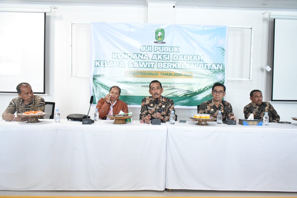Suaraindonesiaku.com, SINJAI – Pemerintah Kabupaten Sinjai menggelar Uji Publik Dokumen Rencana Aksi Daerah Kelapa Sawit Berkelanjutan (RAD-KSB) Tahun 2025-2029, Kamis (6/11/2025) Pagi. Uji publik yang dipusatkan di Aula Pertemuan Dinas Perpustakaan dan Kearsipan Sinjai ini, dibuka langsung Sekretaris Daerah Kabupaten Sinjai A. Jefrianto Asapa. Uji publik ini adalah forum koordinasi dan konsultasi yang melibatkan berbagai pemangku kepentingan untuk membahas, menyempurnakan dan mengintegrasikan rencana aksi daerah agar selaras dengan kebijakan pembangunan nasional. Menurut Sekda A. Jefrianto Asapa , penyusunan ini akan menjadi panduan bagi Pemda, Pelaku Usaha, Petani, dan unsur terkait dalam pengembangan sektor kelapa sawit yang ramah lingkungan, berdaya saing dan berkelanjutan. “Kelapa sawit merupakan komoditas unggulan yang memiliki peran strategis dalam pembangunan nasional. Ini adalah peluang untuk mendorong pengambilan kebijakan pengelolaan kelapa sawit secara berkelanjutan di Kabupaten Sinjai,”ungkapnya saat memberikan sambutan. Kebijakan itu didukung dengan luas lahan kelapa sawit di Sinjai yang cukup banyak yakni mencapai 93 Hektar. “Sesuai dengan pendataan kelapa sawit di Sinjai memiliki luas areal perkebunan seluas 93 hektar, dengan potensi pertambahan areal tanam sebesar 900-1000 hektar,”tambah Sekda. Perlu diketahui, Uji publik ini juga dilakukan mengikuti Instruksi Presiden Nomor 6 tahun 2019 tentang Rencana Aksi Nasional Perkebunan Kelapa Sawit Berkelanjutan (RAN-KSB) 2019-2024 yang menginstruksikan Menteri, Kepala Badan, Gubernur, Bupati/Walikota, agar melaksanakan hal tersebut sesuai tugas, fungsi dan kewenangan masing-masing. Turut hadir Perwakilan Plt Kepala Biro Perekonomian dan Adm. Pembangunan Setda Prov. Sulsel, Sekretaris DPW Asosiasi Petani Kelapa Sawit Seluruh Indonesia (APKASINDO) Sulsel, OPD terkait, Camat Area Kelapa Sawit, Kades/Lurah, Pihak Akademisi yang konsen dibidang pertanian, Penyuluh serta Tim Penyusun RAD.